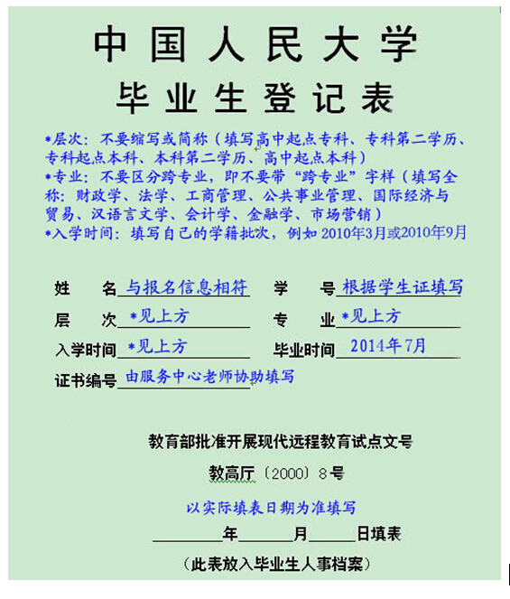 八、畢業(yè)生登記表的填寫請參考以下模板和內(nèi)容: