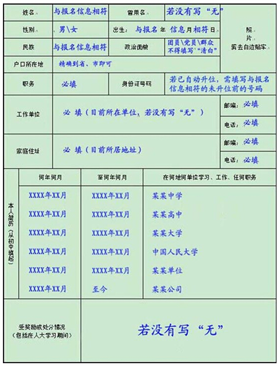四、政治面貌一欄只能填寫群眾、中共黨員、中共預(yù)備黨員、團員,不能填寫“清白”二字;