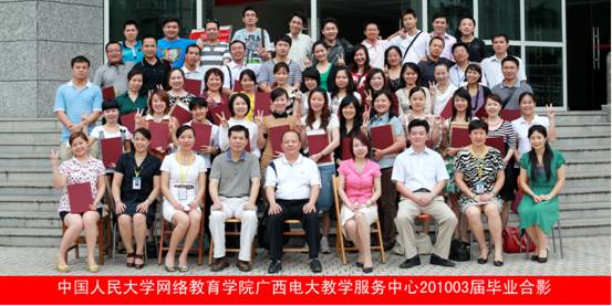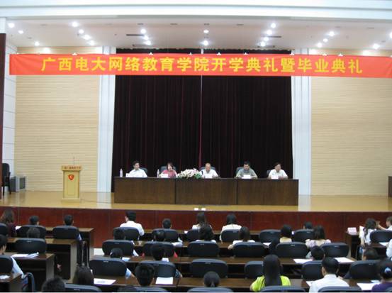 2010年5月15日上午,201003中國(guó)人民大學(xué)網(wǎng)絡(luò)教育新生開學(xué)典禮暨畢業(yè)典禮,在廣西電大遠(yuǎn)教大廈一樓報(bào)告廳隆重舉行。廣西電大宋志生副校長(zhǎng)、網(wǎng)絡(luò)學(xué)院全體教職工及新生、畢業(yè)生參加了典禮。開學(xué)典禮暨畢業(yè)典禮由唐建軍副院長(zhǎng)主持。