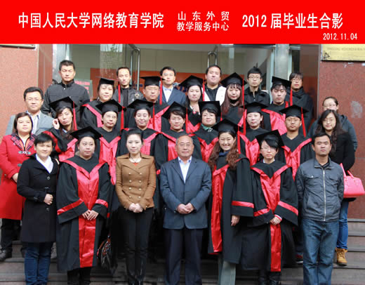 金秋,收獲的季節(jié)。11月4日,秋高氣爽,碧空如洗。在這美好的日子里,中國人民大學(xué)網(wǎng)絡(luò)教育學(xué)院山東外貿(mào)教學(xué)服務(wù)中心2012屆畢業(yè)典禮隆重舉行。為了向畢業(yè)生表示祝賀,為同學(xué)們提供更多交流的機(jī)會(huì),山東外貿(mào)教學(xué)服務(wù)中心精心安排了豐富多彩的活動(dòng),會(huì)場懸掛了許多向畢業(yè)生表示祝賀的條幅,整個(gè)畢業(yè)典禮別開生面、生動(dòng)有趣,氣氛熱烈。本次共有畢業(yè)生共150名,其中獲得學(xué)士學(xué)位的學(xué)生有21人。