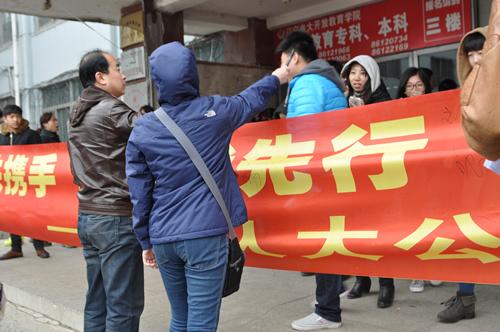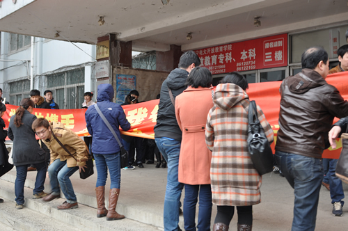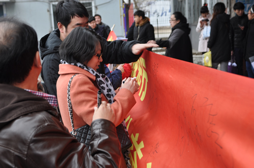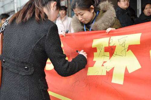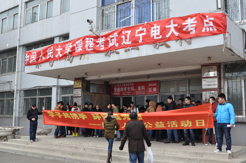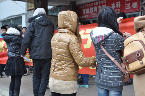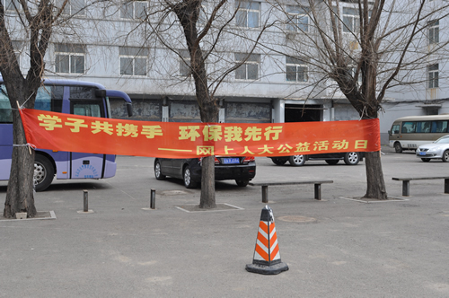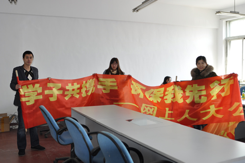 2013年4月13至14日,經(jīng)過一段時間的廣泛動員和活動前準備,網(wǎng)上人大遼寧電大服務(wù)中心在201304批次課程考試期間舉辦了主題為“學子共攜手,環(huán)保我先行”的簽名活動。雖然活動第一天忽然降溫,空中飄起了雨夾雪,但是絲毫阻擋不住大家的參與熱情。前后約有兩百余人簽名,橫幅上的每一個簽名都代表了網(wǎng)上人大學員的公益之心?! ?/p>