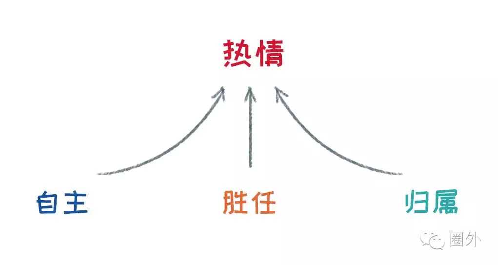 因?yàn)?,熱情并不來源于愛好。根?jù)自我決定理論,熱情來源于自主感、勝任感、歸屬感。