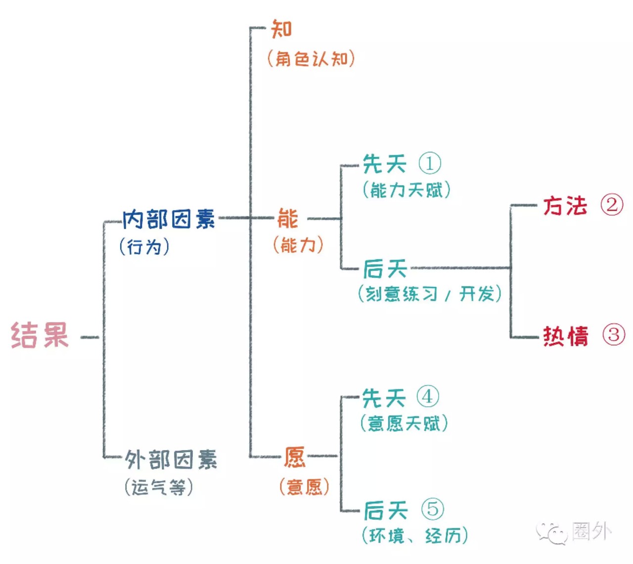 也就是說,能力取決于先天的能力天賦以及后天的刻意練習(xí)。而意愿,也取決于先天的意愿天賦以及后天的環(huán)境和經(jīng)歷。