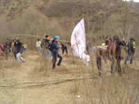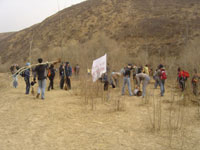簡單的休整之后,我們向“網(wǎng)上人大林”出發(fā)了,山路有些崎嶇,但是大家有說有笑,興致昂揚。半個小時之后,那片歷經(jīng)了六年風雨,仍然傲然挺立的樹林出現(xiàn)在我們眼前,大家來不及放下行裝,就開始忙活起來,挖坑、培土、澆水,很快又為“網(wǎng)上人大林”增加了一片新綠。山里的春天來得有點晚,因為缺水的原因,“網(wǎng)上人大林”現(xiàn)在還不算茂盛,但是我們相信那一棵棵頑強生長的小樹苗和廷元希望小學的孩子們一樣代表著夢想,傳承著“綠化山河”和“改變家鄉(xiāng)面貌”的希望。
