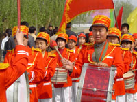 | 孩子們用歡快的鑼鼓迎接我們的到來 |