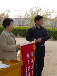 學(xué)校領(lǐng)導(dǎo)給我們贈(zèng)送錦旗,來表達(dá)對我們的謝意 |